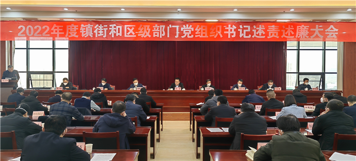 1月7日,陳倉區召開2022年度鎮街和區級部門黨組織書記述責述廉大會。區委書記馬霄主持會議并講話。