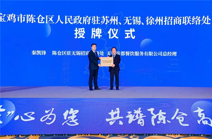 會上,馬小鋒為陳倉區駐蘇州、無錫、徐州三個招商聯絡處授牌。陳倉科技工業園區、陳倉區工信局、陳倉區文旅局、陳倉區住建局、正威寶雞公司作了項目推介,部分企業家代表進行了發言。