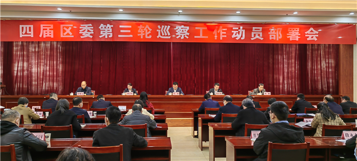 3月27日,我區召開四屆區委第三輪巡察動員部署會,會議深入學習了習近平總書記關于巡視工作的重要論述和省市區委巡視巡察工作要求,安排部署本輪巡察工作。區委書記、區委巡察工作領導小組組長馬霄參加會議并講話。