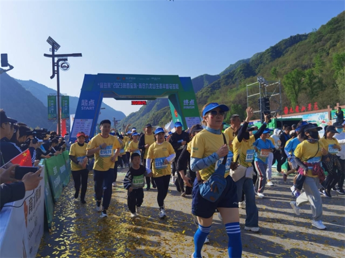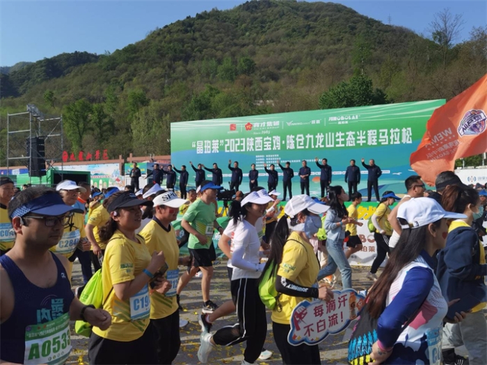 4月16日上午,“晶珀萊”2023陜西寶雞·陳倉九龍山生態(tài)半程馬拉松在九龍山景區(qū)鳴槍起跑,來自全國各地的8000多名專業(yè)運(yùn)動員和跑步愛好者,奔跑在風(fēng)光旖旎的中國最美馬拉松賽道上,用力量和激情演繹無限精彩,用奔跑與速度展現(xiàn)開放活力。
