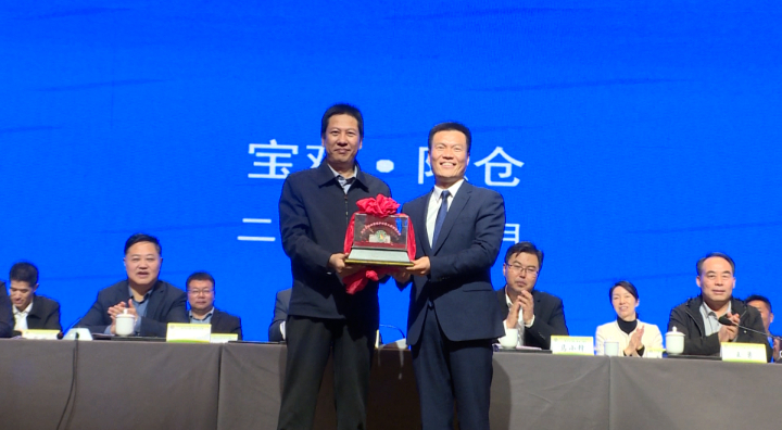 副區長楊利剛了作六十二屆聯委會工作報告并與第六十三屆聯委會主任委員、漢中市留壩縣委常委、副縣長程相敬進行印章交接。