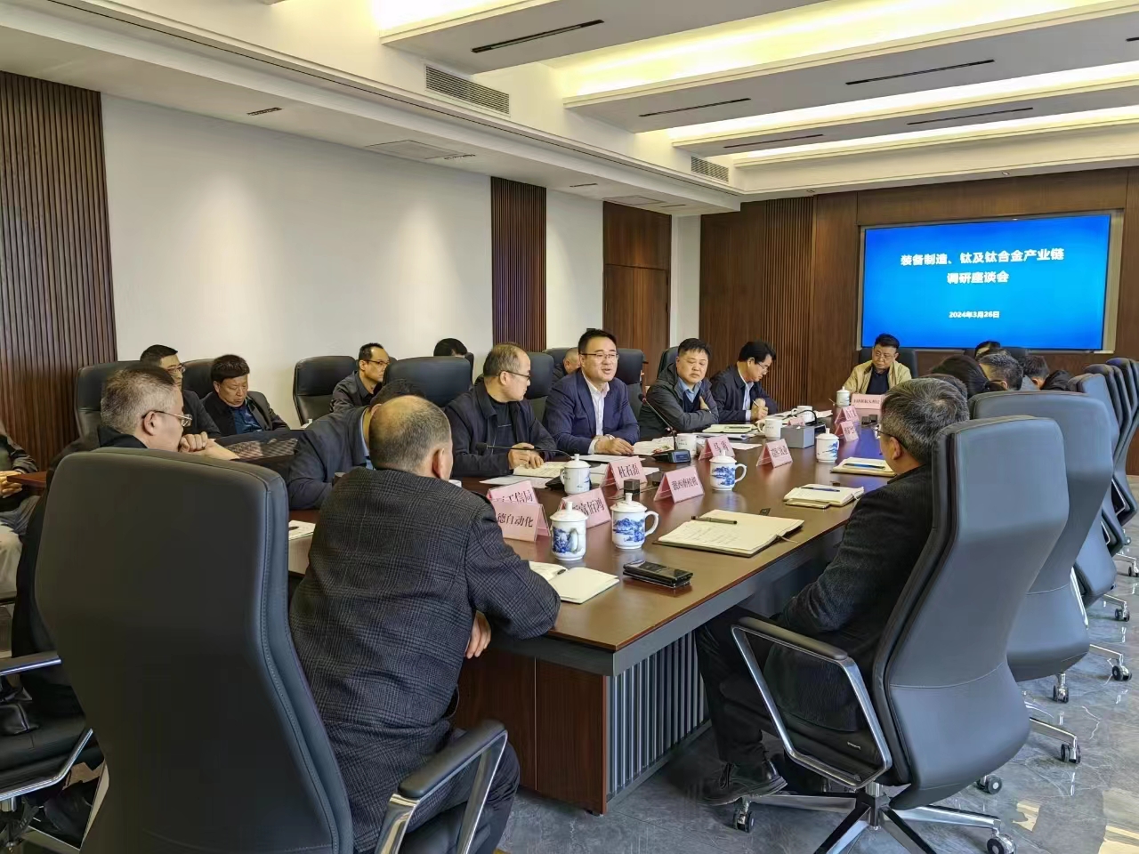 3月26日下午,陳倉區委書記馬霄調研全區高端裝備制造產業鏈、鈦及鈦合金產業鏈發展情況并主持召開座談會。區委副書記、鈦及鈦合金產業鏈鏈長柳鵬舉,副區長杜石磊,區政協副主席、高端裝備制造產業鏈鏈長高玉文參加活動。區級相關部門,10戶產業鏈企業負責人參加座談會。