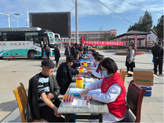 省榮復軍人第一醫院精選18名技術精湛的醫務人員組成巡診工作隊,啟用大型體檢車,攜帶精良醫療設備,分別在慕儀鎮和賈村鎮集中巡診2天,為傷殘軍人、三屬、在鄉老復退軍人、帶病回鄉軍人、參戰參試退役軍人、年滿60周歲農村籍退役士兵、烈士子女等352名優撫對象進行健康體檢,并建立個人健康檔案納入系統管理。
