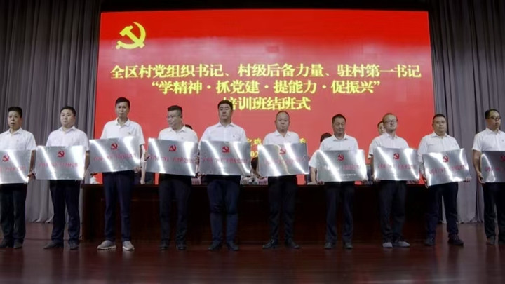 會上,與會領導為第二批市級“四美”紅旗村黨組織授牌。部分學員代表作了交流發言。全區鎮街組織委員、157個村黨組織書記、村集體經濟組織負責人,村黨組織書記后備力量代表,市、區兩級駐村第一書記和各鎮街相關負責人共300余人參加結班儀式。