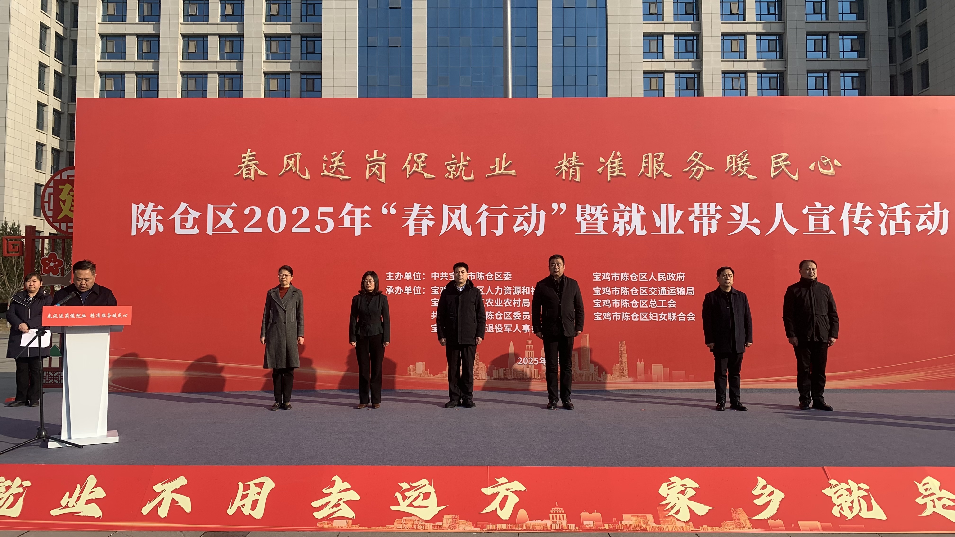 2月10日,陳倉區2025年“春風行動”暨就業帶頭人宣傳活動啟動儀式在區政府南廣場舉行。市人社局黨組成員、二級調研員張建國宣布活動啟動,區委副書記、區總工會主席柳鵬舉致辭,區委常委、常務副區長高婷主持活動。區人大常委會副主任閆海艷、區政協副主席王鋒剛參加活動。