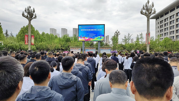 “全民健身 活力陳倉”,4月27日,陳倉區(qū)第五屆機(jī)關(guān)職工運動會開幕式在區(qū)政府南廣場舉行。
