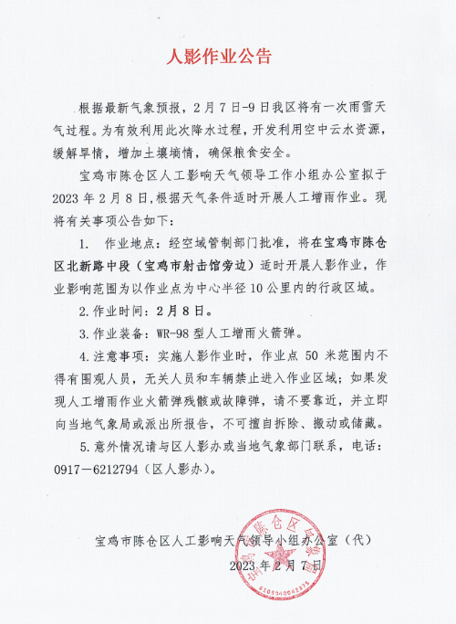 人影作業公告